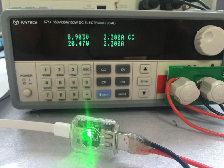 原裝適配器上,顯示的是5V 2A,9V 2A,12V 2A,先用LDR-PD02對其各檔電壓和電流進行測試: