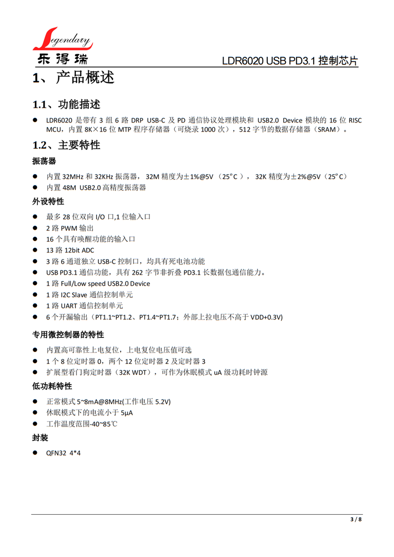 一、USB PD3.1 SOC控制芯片LDR6020