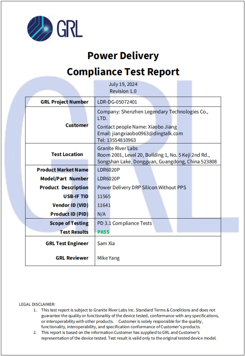 圖1 LDR6020P USB-IF認(rèn)證截圖