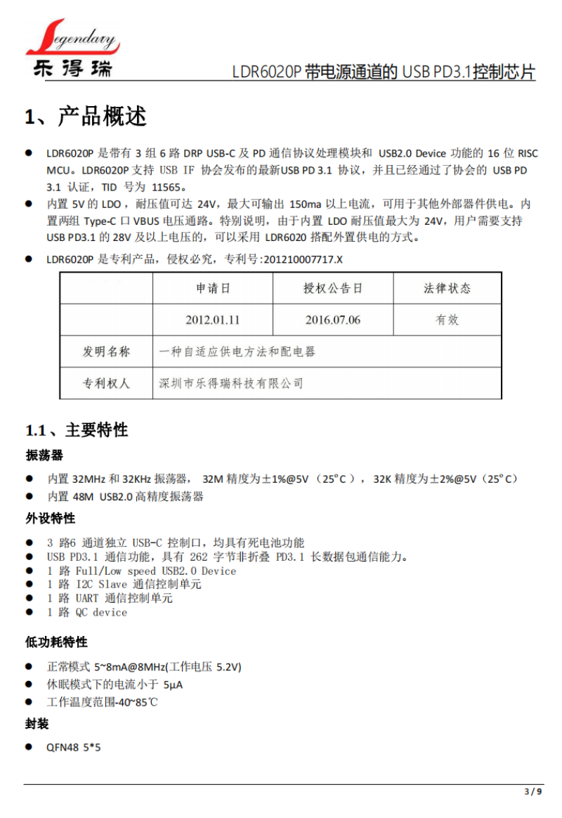 一、基于SIP技術(shù)的USB PD3.1 PMU芯片LDR6020P