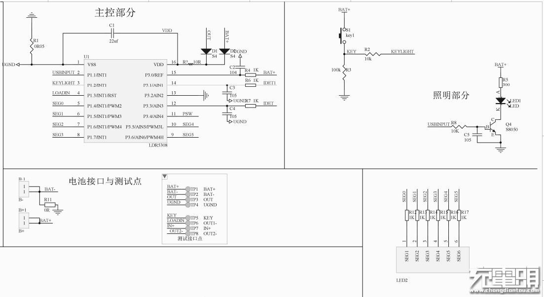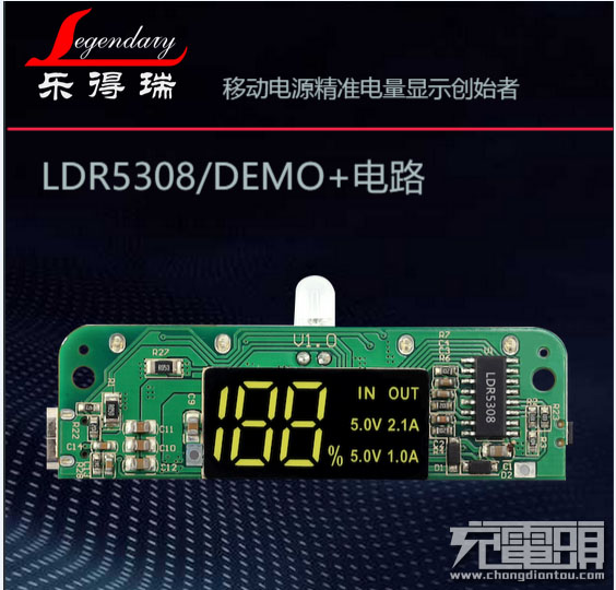 與樂得瑞LDR5208 Demo板相似,LDR5308移動電源Demo板正面也采用了大尺寸液晶顯示屏設(shè)計,方便用戶準(zhǔn)確獲取電池信息。