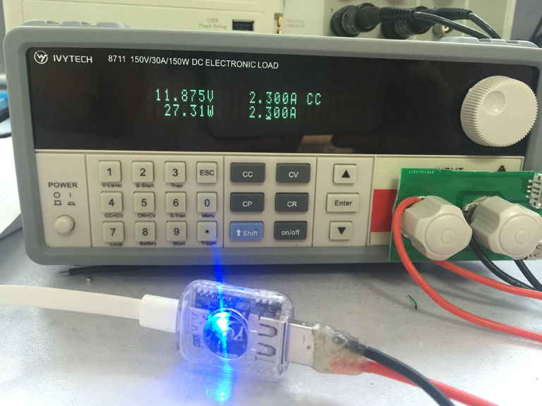 原裝適配器上,顯示的是5V 2A,9V 2A,12V 2A,先用LDR-PD02對其各檔電壓和電流進行測試: