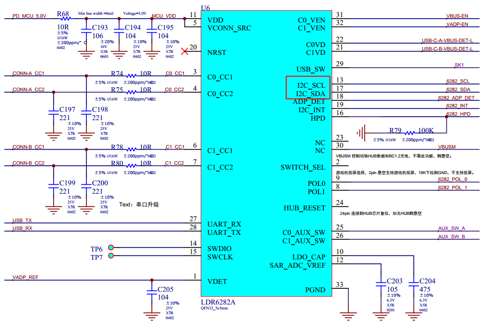 1080P/2K 雙USB Type-C接口盲插便攜顯示器解決方案 LDR6282A部分電路如下: