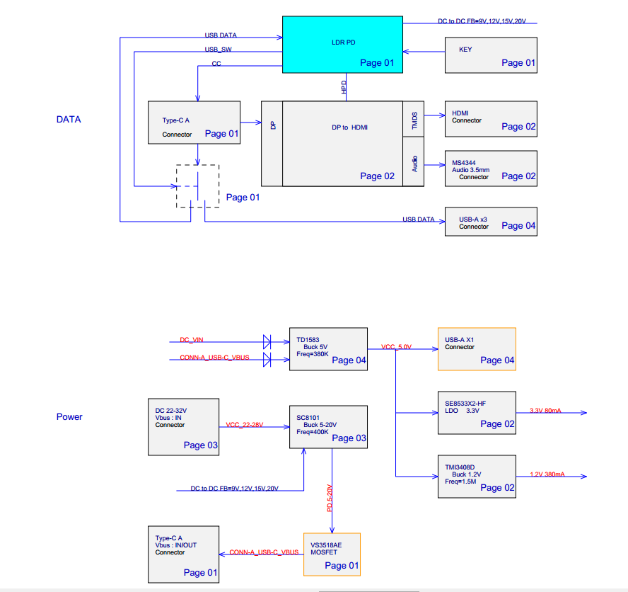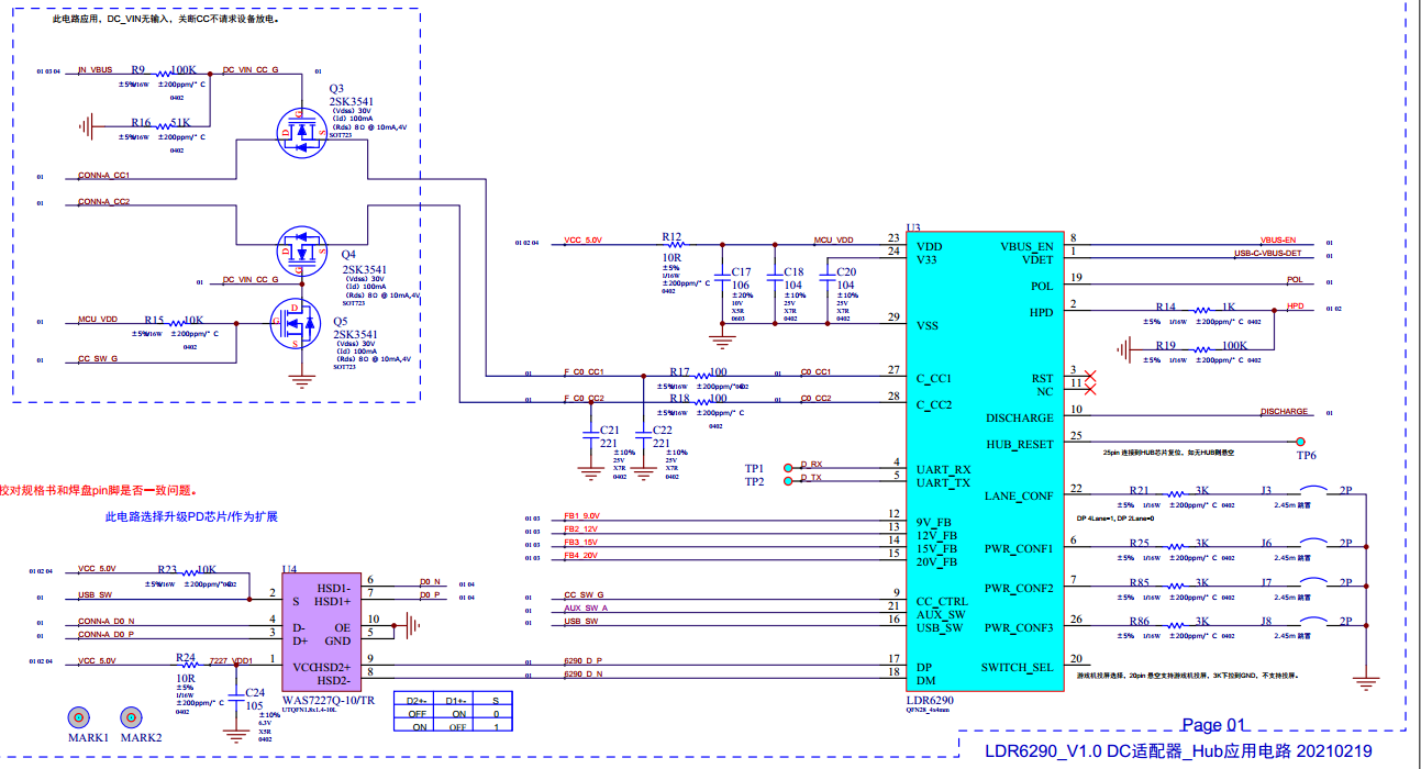單USB Type-C接口桌面顯示器專用解決方案,LDR6290部分電路如下:
