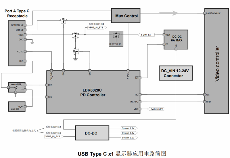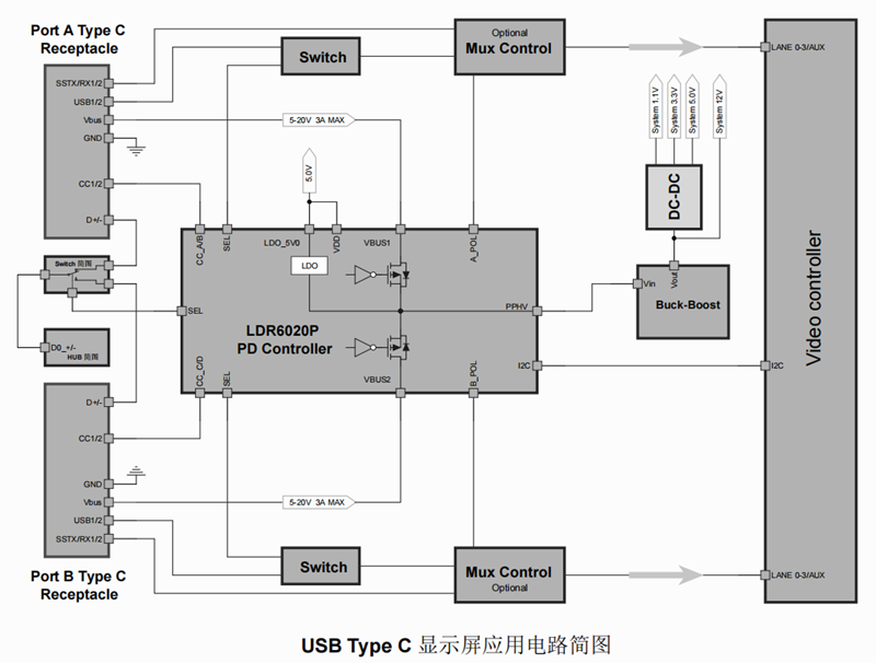 圖3 LDR6020在USB-C接口顯示器中的應(yīng)用