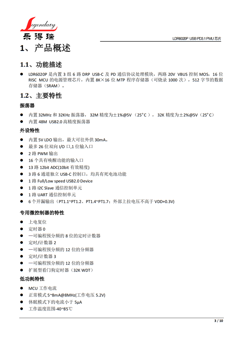 一、USB PD3.1 SOC控制芯片LDR6020